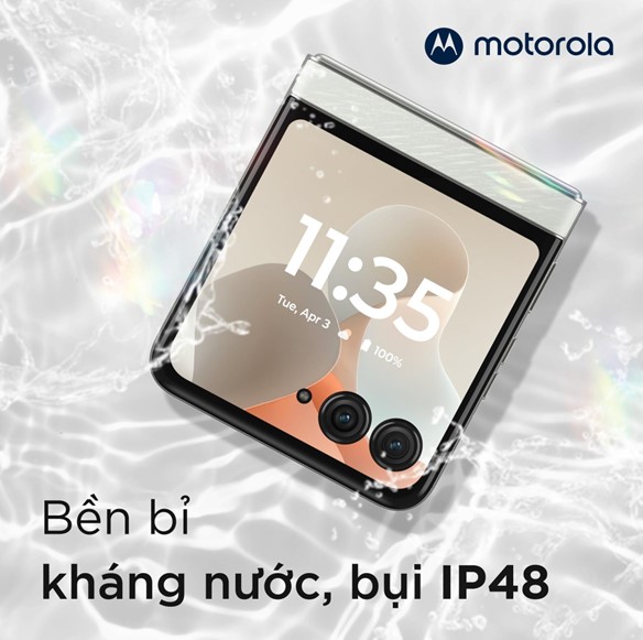 Điểm nhấn vượt trội của của razr 60 còn nằm ở khả năng kháng bụi, kháng nước đạt chuẩn IP48, cho phép người dùng tự tin sử dụng trong mọi điều kiện. Kết hợp chip MediaTek Dimensity 7400X, RAM 8GB, bộ nhớ 256GB và pin 4500 mAh hỗ trợ sạc nhanh TurboPower 33W bảo đảm hiệu năng cao và năng lượng bền bỉ, razr 60 là biểu tượng cho sự kết hợp giữa thời trang, công nghệ và độ bền chuẩn cao cấp.