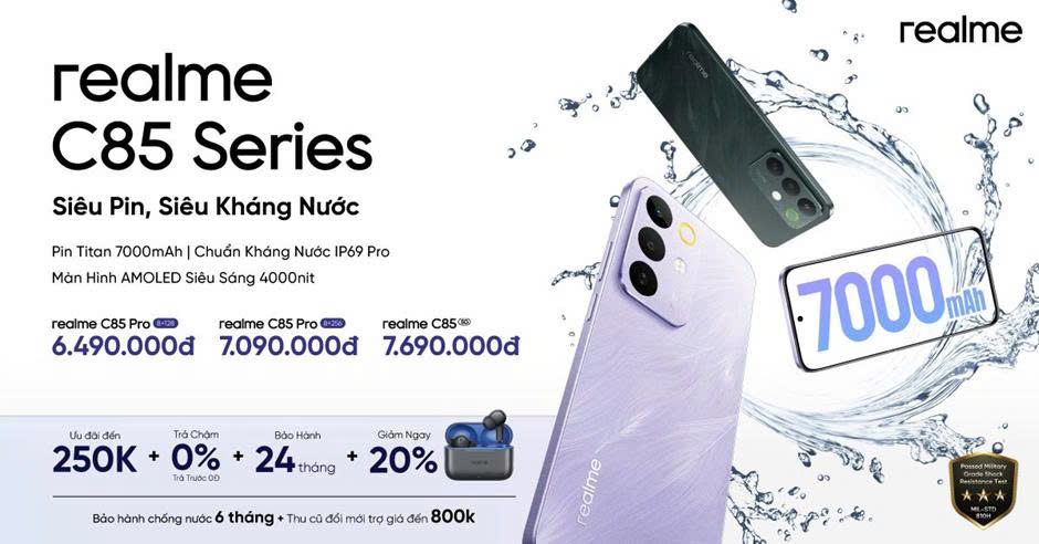 - realme C85 Pro (8GB + 256GB): 7.090.000 đồng